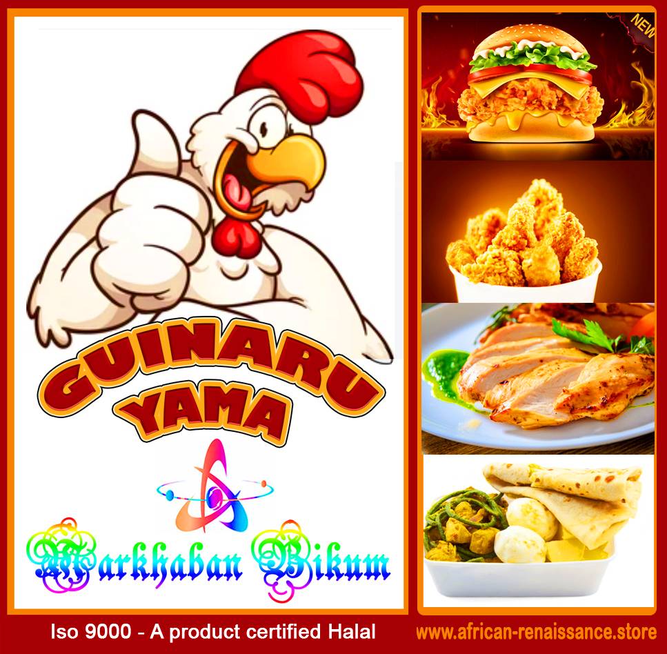 Another part of the hens that is not destined to lay eggs is transformed in slaughterhouses, deplummed and sold as broiler chicken in stores under the labels: Guinaru Yama, Guinaru Muhammad, Guinaru Badji, Guinaru AntaYi, Guinaru jabaruBuur, Fatima's Chicken, Canda Chiken etc.